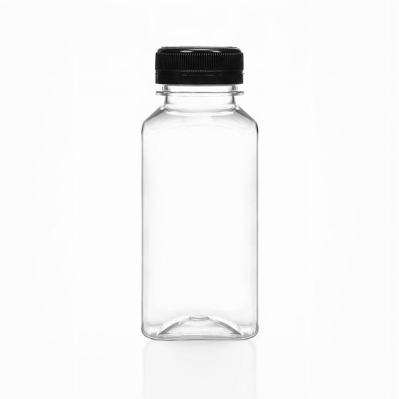 8oz/12oz/16oz Clear PET Plastic Juice Bottles with Caps (Square)